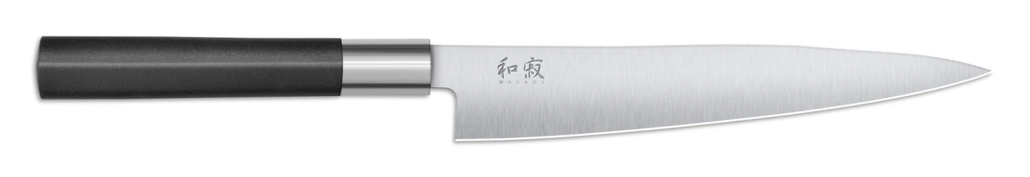 Die Serie Wasabi Black findet ihren Ursprung in der japanischen Großküche wieder. Durch eine gelungene Kombination aus beständiger Funktionalität und Schärfe, robuster Materialqualität und sachlich reduziertem Design, sind die zahlreichen Klingenformen der Serie für einen unkomplizierten Dauereinsatz konzipiert. Dabei umfasst die Serie sowohl einseitig als auch beidseitig geschliffene Klingenformen und überzeugt durch ein beeindruckendes Preis-Leistungsniveau. Den pflegeleichten Umgang verdankt die Serie zuletzt auch dem wasserbeständigen Kunststoffgriff, dessen angenehme Haptik auf den Zusatz von Bambuspuder zurückzuführen ist.