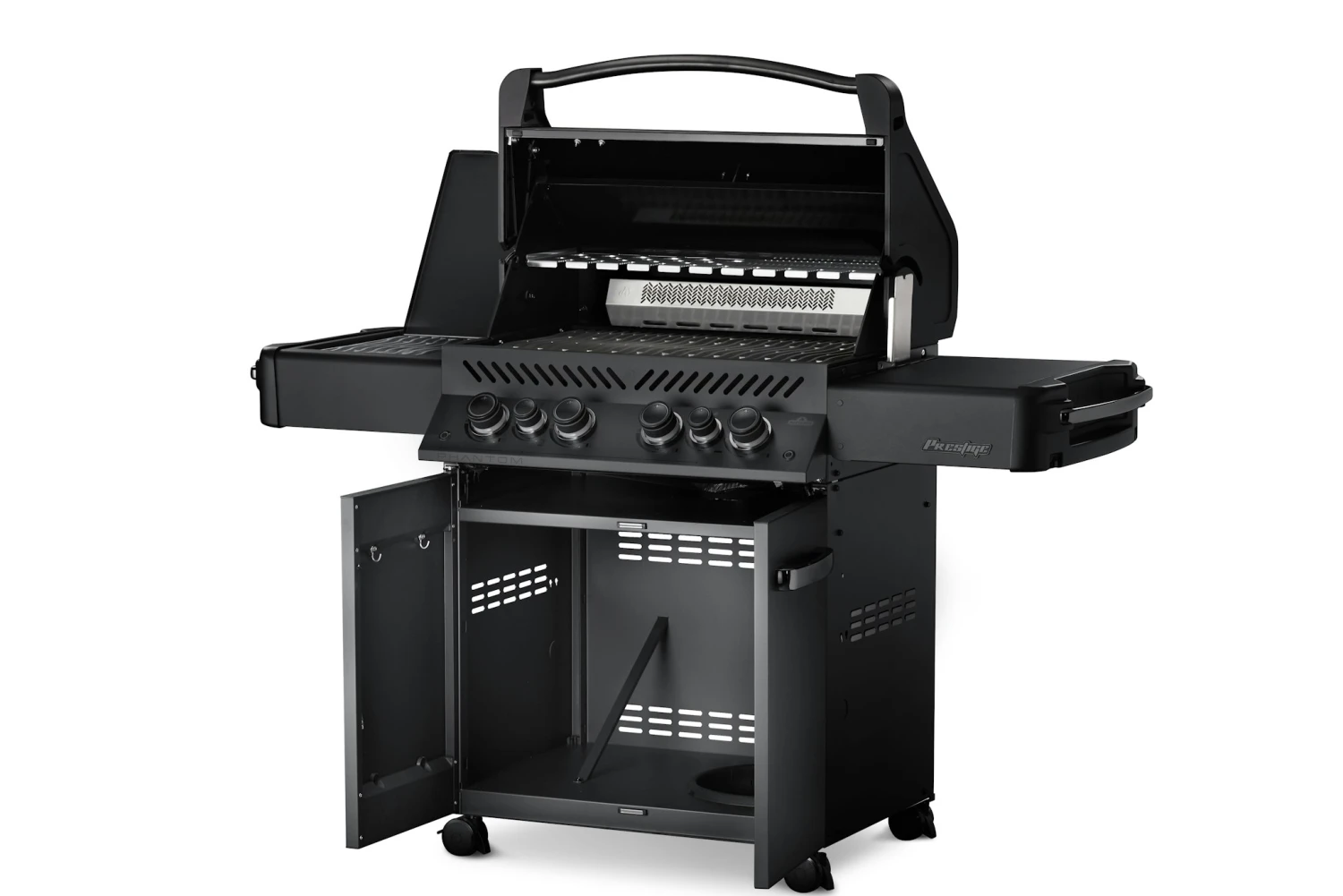 Der Napoleon® Prestige® 500 PHANTOM mattschwarz vereint unter seiner hochwertigen und platzsparenden LIFT EASE™ Rollhaube alles, was sich ein ambitionierter Grill- vorstellen kann. Sein neues, exklusives Design in Mattschwarz wird bei allen Treffen unter Grillfreunden für Aufsehen sorgen.