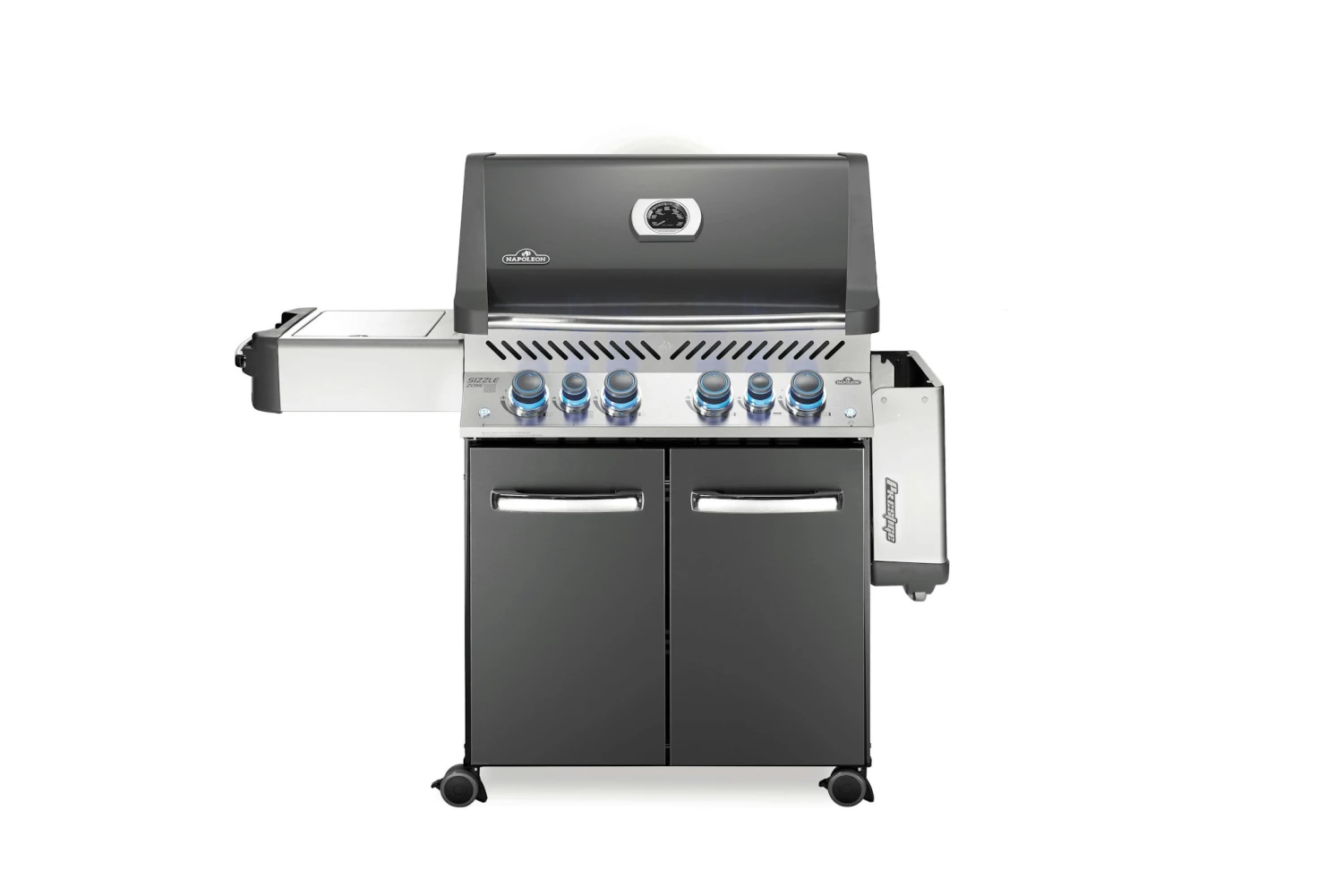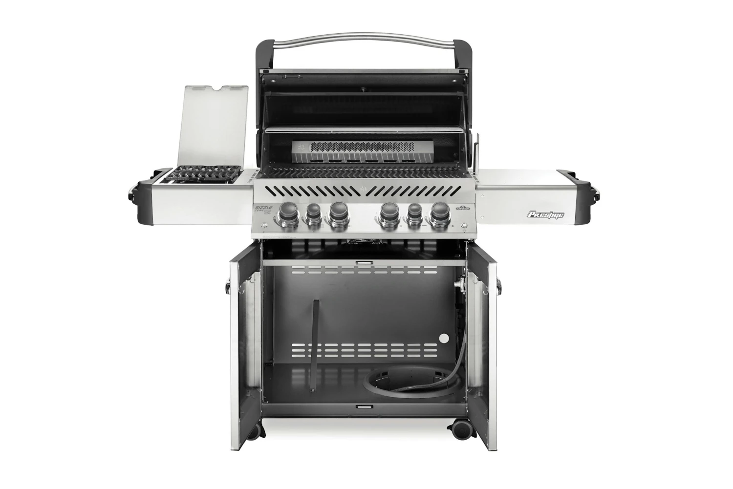 Der Napoleon Prestige 500 vereint unter seiner schicken und platzsparenden LIFT EASE Rollhaube alles, was sich ein Grillmeister vorstellen kann. Mit 4 Hauptbrennern, einem Infrarot-Heckbrenner für Gerichte vom Drehspieß und dem Infrarot SIZZLE ZONE Seitenbrenner für perfekte Steaks ermöglicht er vielfältigste Formen der Zubereitung. Auf der großzügigen Hauptgrillfläche plus Warmhalterost lassen sich Familie, Freunde, Nachbarn und der Fußballclub verköstigen. Grillfläche 71 x 46 cm Seitenbrenner 24 x 37 cm