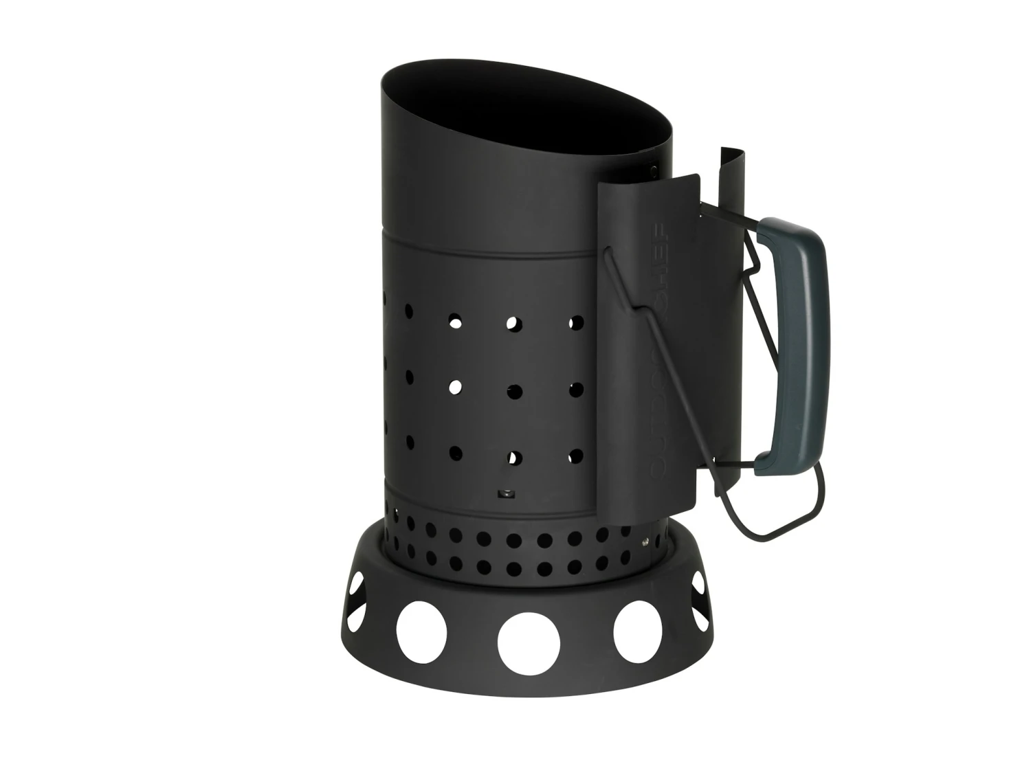 Der neue OUTDOORCHEF Anzündkamin sorgt für ein sicheres und schnelles Nachfüllen glühender Kohlen/Briketts. Keine heissen Finger dank des Hitzeschilds am Griff. Der passende Untersatz des Anzündkamins verhindert Brennspuren sowie Holzkohle- und Aschereste.