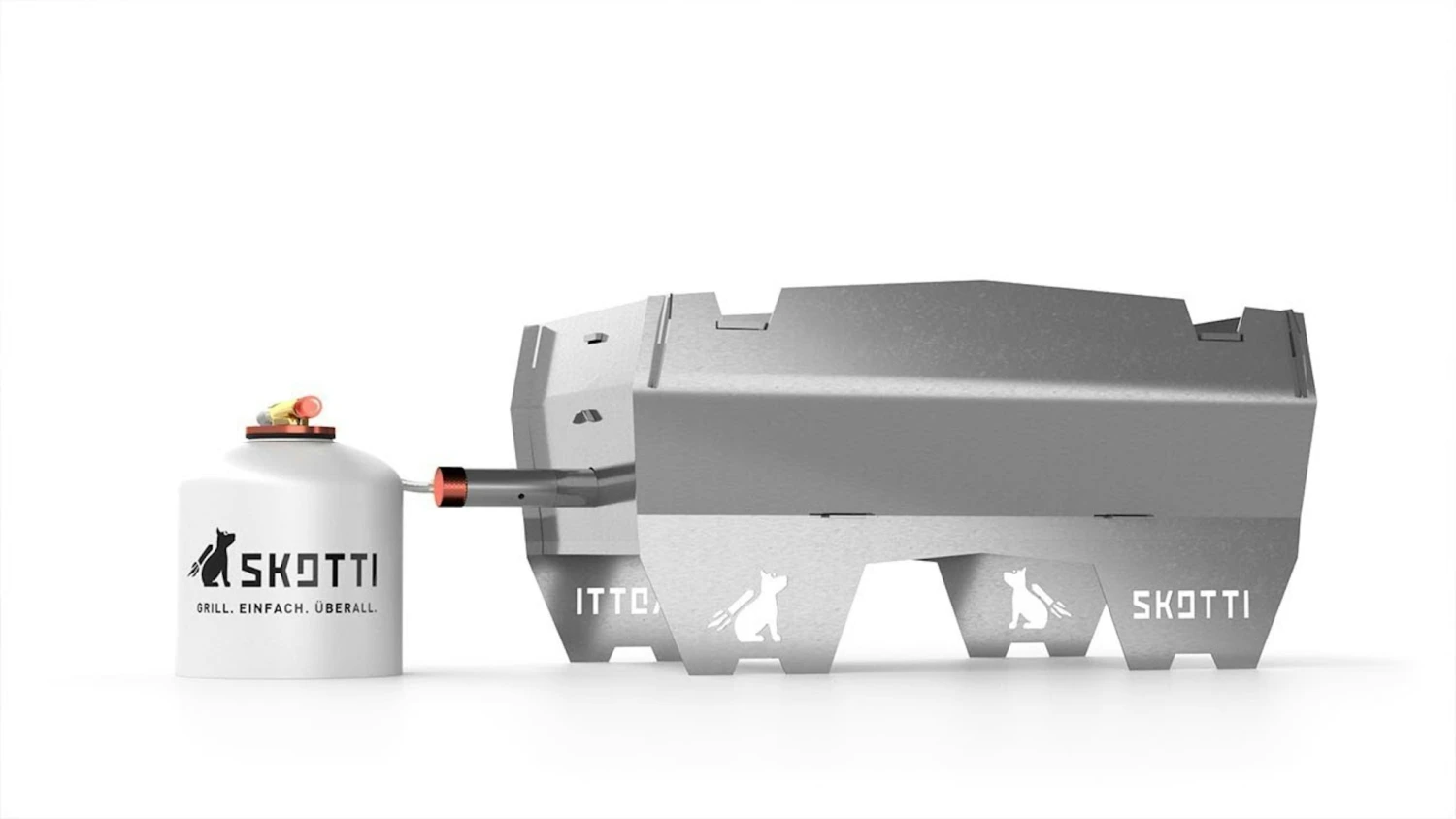 DER ERSTE ZERLEGBARE GASGRILL DER WELT geht in die nächste Runde – Der Skotti 2.0 Lass uns rausgehen – was erleben. Alleine oder mit Freunden. Outdoor beim Wandern, Klettern oder Campen. Beim Motorrad, Fahrrad- oder Kanufahren. Am Strand, im Wald, beim Festival oder zu Hause auf Deinem Balkon. Die neue Version vom Skotti steht dem Ur-Skotti in nichts nach. Das Update bezieht sich hauptsächlich auf die nun integrierte Tropfschale „Pool“ plus noch kleinere Änderungen. Dazu unten mehr. Wohin Du auch willst – ich begleite Dich und mach’s Dir leicht. Denn mit schlanken 3 kg und flach zerlegt in meine Tasche passe ich locker unter Deinen Arm, in Deinen Rucksack oder auf Deinen Gepäckträger. Sobald Du Hunger hast, komme ich groß raus. In nur einer Minute stehe ich ZACK-KLACK-FERTIG vor Dir. Schon grillst Du los – lecker, schnell und umweltfreundlich.